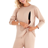 Effortless Elegance Set with Rib Side Zip Long Sleeve Maternity/Nursing Top & Lounge Pants