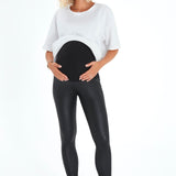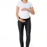 Subtle Foldover Waistband Faux Leather Maternity Leggings