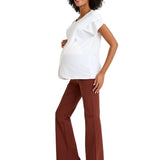Warm flare maternity trousers with warm inner texture. Zippered front pockets and high waist. Very durable and breathable fabric.